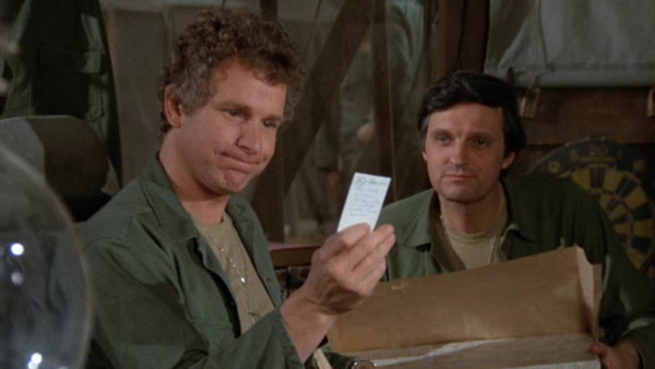 Trapper gets a letter that sends him into a funk because he’s missing his daughters growing up, Klinger (Jamie Farr) is penning letters about sick family in order to get his discharge, and Hawkeye puts one over on Frank who is investing his money and reaping some rewards.