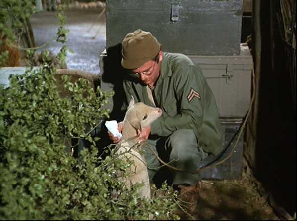 As the party gets closer, and the enthusiasm of real food sweeps the camp, Radar is shocked to discover that the Greeks have brought in a lamb for the dinner. He can’t let that happen, despite the fact that everyone else is salivating for it, and comes up with a way to get the lamb away from trouble.
