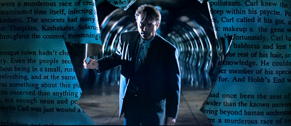 Trent with an Arcane representative, Linda Styles (Julie Carmen) travelling with him, seeks out Cane, having pieced together through clues, and finds himself, somehow, in what should be a fictional town, Hobb’s End. Styles knows the details of all the inhabitants because she’s served as Cane’s editor, and things really get weird and frightening after that.