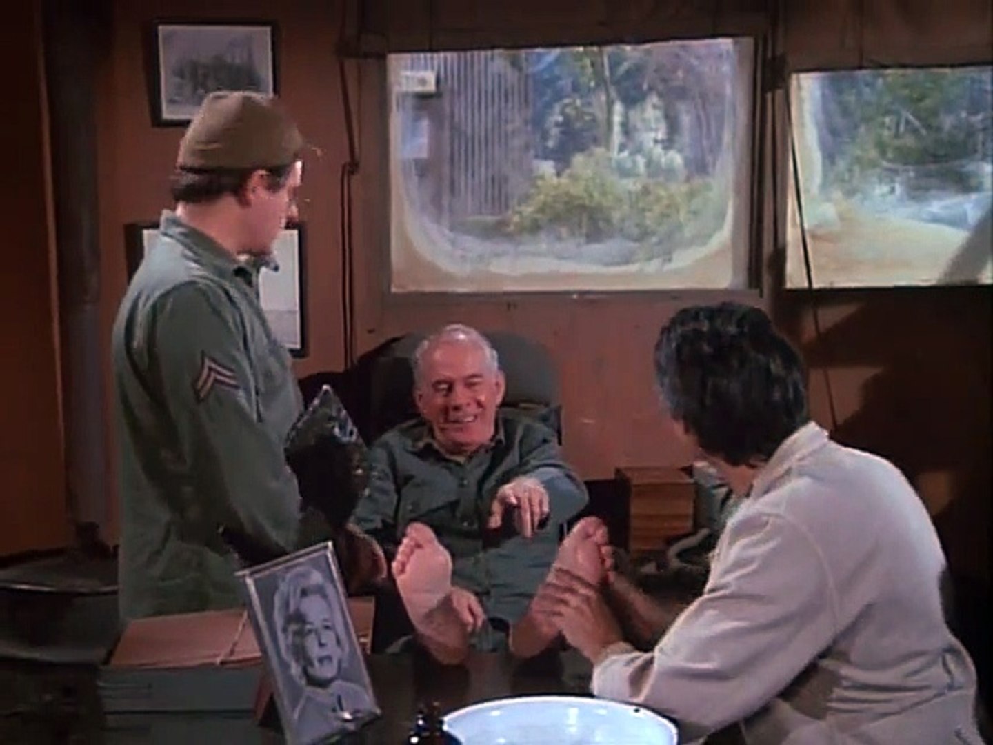 While Hawkeye conducts foot exams of everyone in the camp, setting up a great final moment with Frank, Radar shares his thoughts with his mother via mail. He talks about the camp as we dive into another bit of slice-of-life episode. Potter’s wife calls as she has a premonition that something bad is going to happen to him (he gets shot in the butt), and Frank is worried about North Korean soldiers sneaking into the camp.