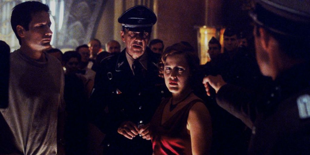 Arriving on board, he is somehow transported back to the year of the ship’s disappearance, 1939, and learns that the Nazis have boarded and are searching for a weapon, code named Thor’s Hammer. It’s not a weapon, it’s a man, and Mulder knows who he is. He’s also being protected by an OSS agent who looks a lot like Scully (Gillian Anderson), and amongst the Nazis are some familiar faces as well, CSM (William B. Davis), Skinner (Mitch Pileggi) and Spender (Chris Owens).
