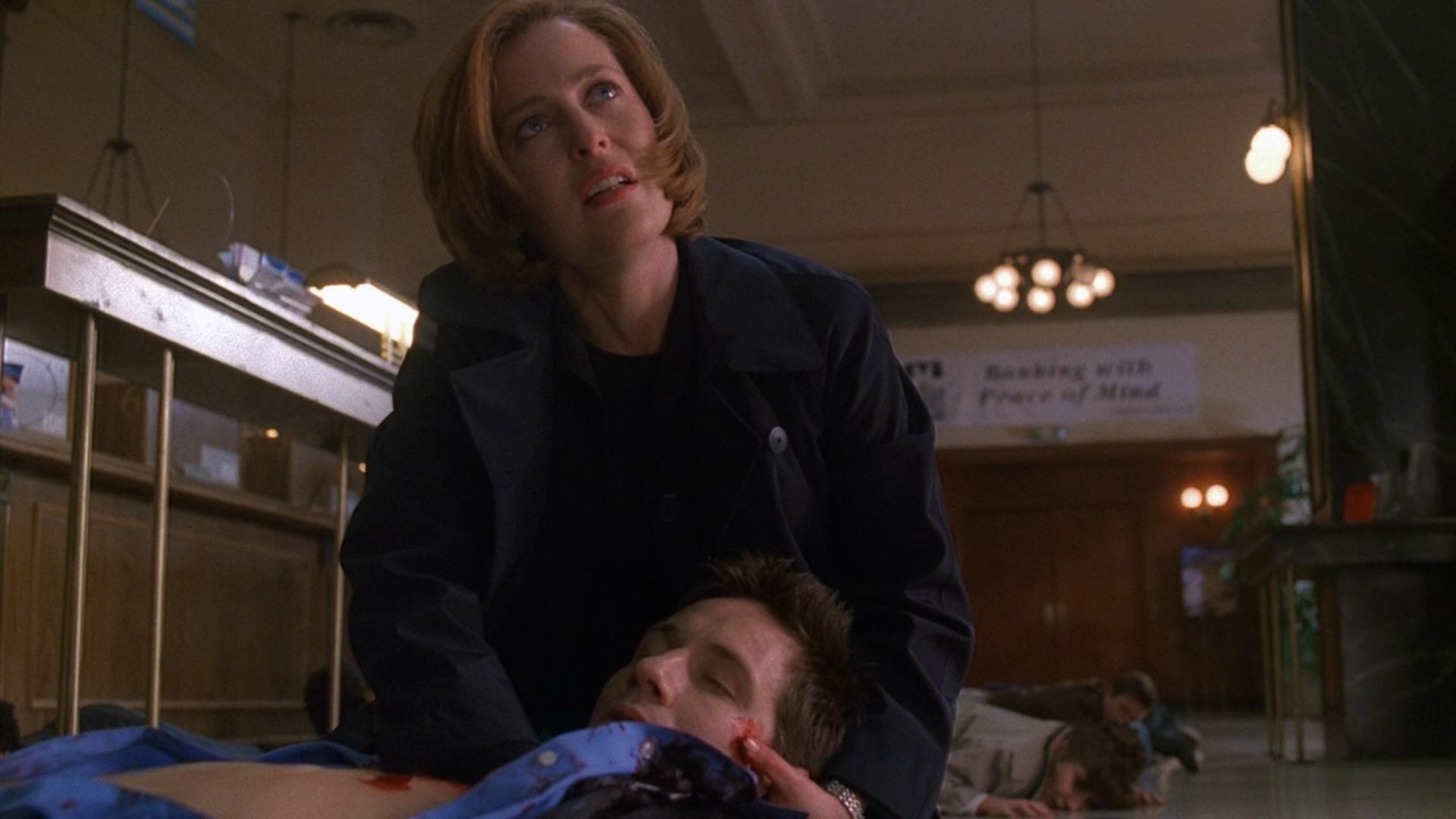 Scully and Mulder are stuck in a day that constantly repeats, swept up in events that a woman, Pam (Carrie Hamilton) is trying to stop and save her boyfriend, Bernard (Darren E. Burrows), who,when his bank robbery attempt fails, detonates a bomb that totals the bank, and kills everyone in it, including Mulder and Scully.