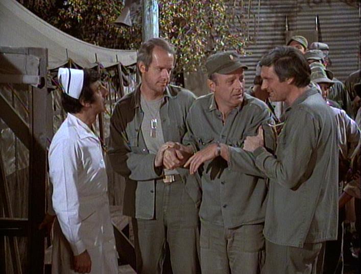 Klinger (Jamie Farr) helps a Puerto Rican soldier who had to lose his moustache during surgery, and is now lamenting it, and Frank, who is refusing to donate blood, reveals that he’ll be going home soon.