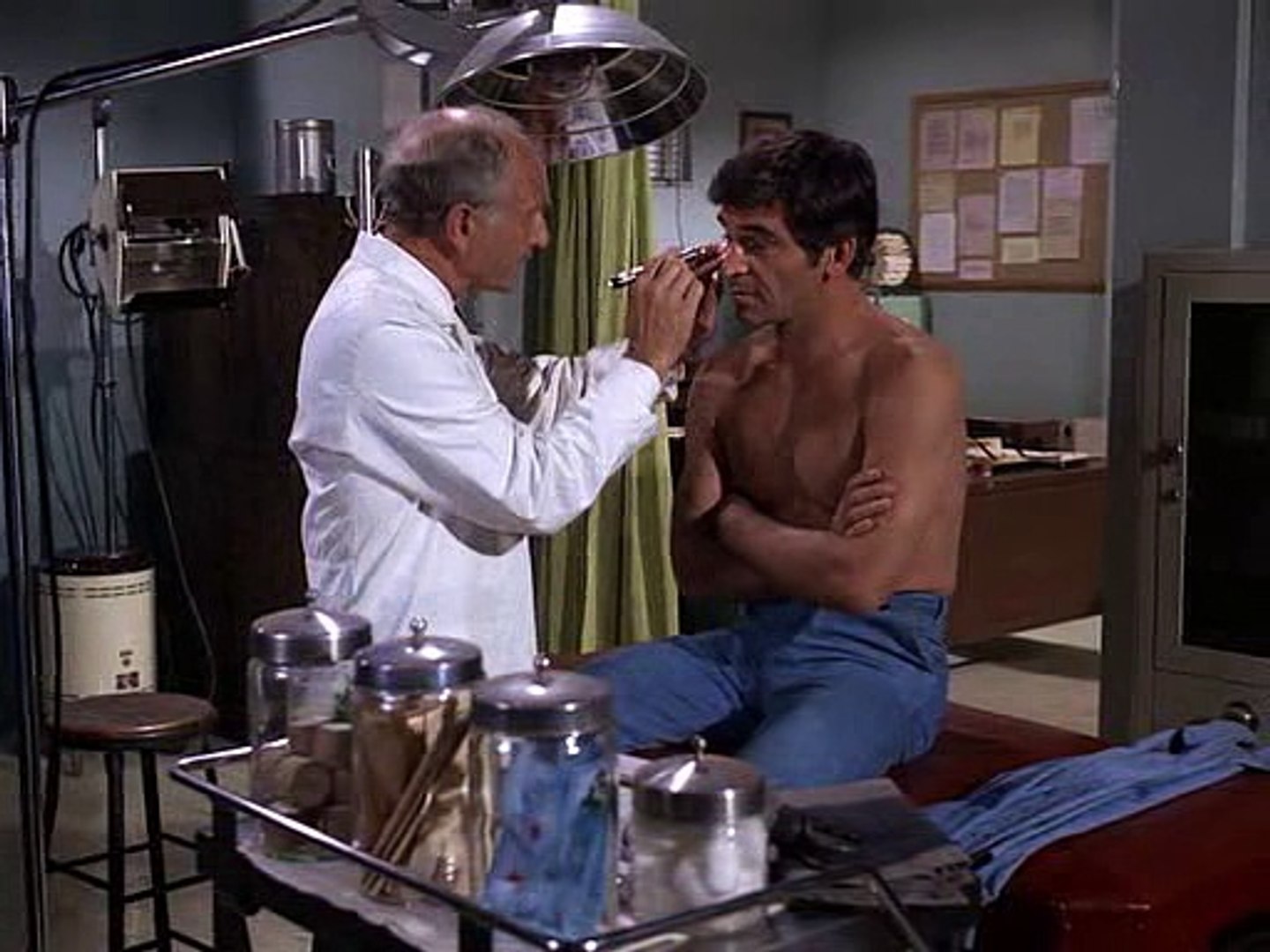 So they put him under, and set up a hospital room, a viewing screen, and pretend to revive him in the far distant year of 1980 (!) so they can learn the location of the money (which is obviously the first thing he would want to find when he wakes), but that may all be part of a blind that that they are running on him, with all of it designed to make Barrett lead them to cash, while its still within the statute of limitations, allowing the team to see that he’s arrested, and sent away once and for all, and reclaim the stolen money!