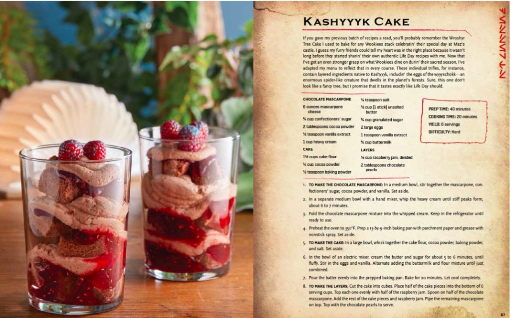 JK: I always make sure that the recipes relate to something real in Star Wars. For instance it’s known that millaflower is red, so I used that as a starting point to create food of that color. I do my best to research the planets to get the flavors and spices that might be aligned with that area of the galaxy. It’s probably over the top, but I want to make sure that fans feel like they’re actually cooking and eating food from within the Star Wars universe.