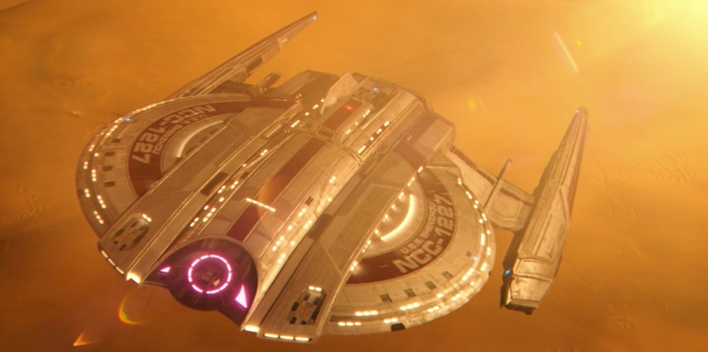 Seeing the lethality of the attacks, Starfleet assigns another ship, the U.S.S. Enterprise, captained by Christopher Pike to join the Shenzhou in stopping the attacking craft, and prevent it from getting off the planet and laying a swath of destruction across the galaxy – even if that means the colony is expendable.