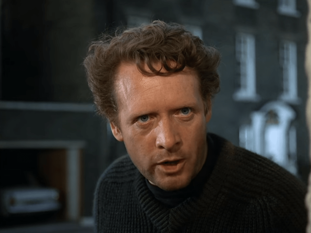 He tracks down his old home, now occupied by a pleasant enough woman, Mrs. Butterworth (Georgina Cookson), who has taken it over, and even has his car in his keeping. He heads to his old agency, and attempts to convince his former employers of what happened, and that they need to locate the Village.