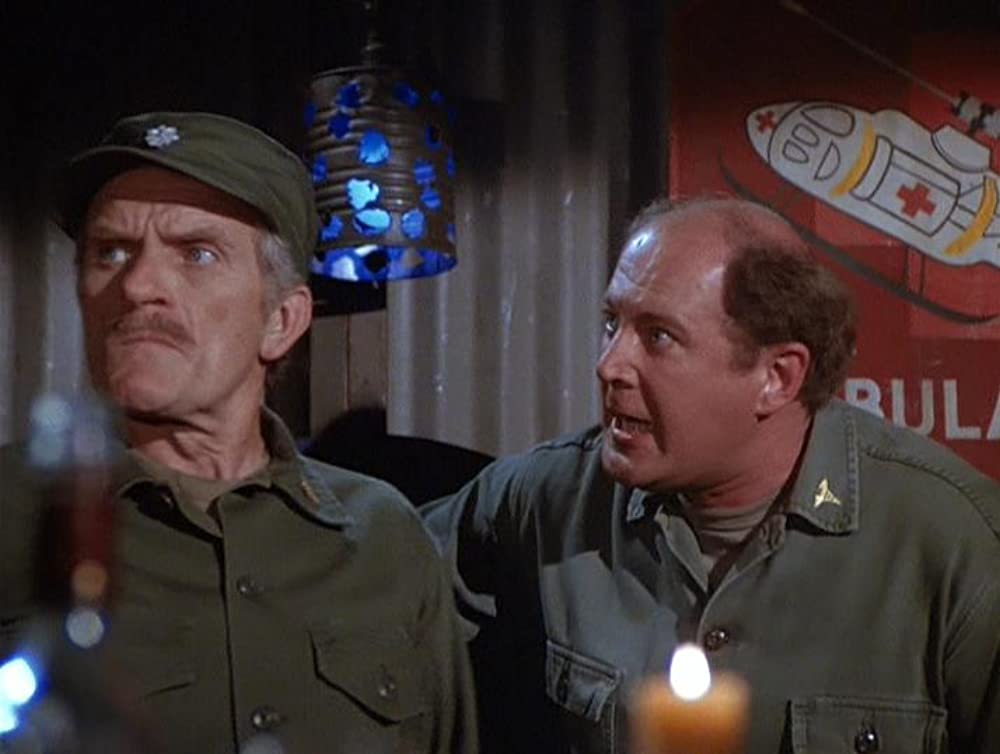 Charles (David Ogden Stiers) is going through his family’s financial records to properly sort them, with Mulcahy (William Christopher) ‘lending a helping hand.’ Klinger (Jamie Farr) is toying with the camp’s PA system, Houlihan (Loretta Swit) has a heat induced rash that is making things very uncomfortable, and every time Potter (Harry Morgan) gets to sleep, he’s roused with another thing he has to do.