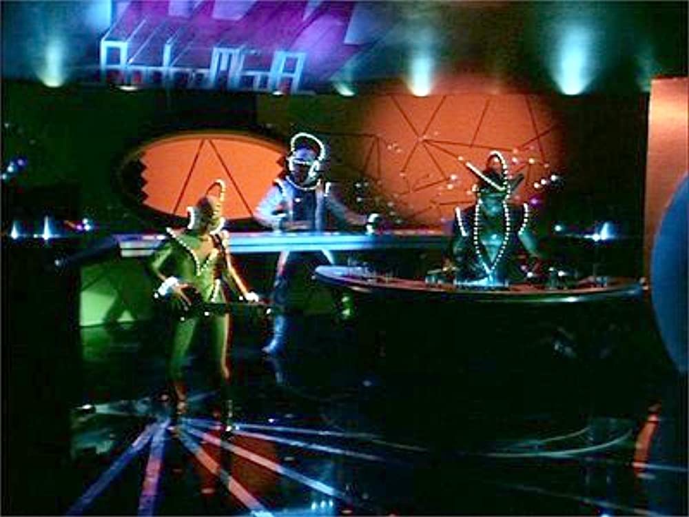 There is a music group, Andromeda (who only seem to have the one song), that has a huge influence on the youth of the galaxy today, broadcasting from their converted space fortress, christened Musicworld, and Lars Mangros (Orbach), with his henchman Yarat (Richard Moll) at his side, are planning to take over the group’s music, and insert subliminal messages into the music to control the children, and throw up violence at the universe.