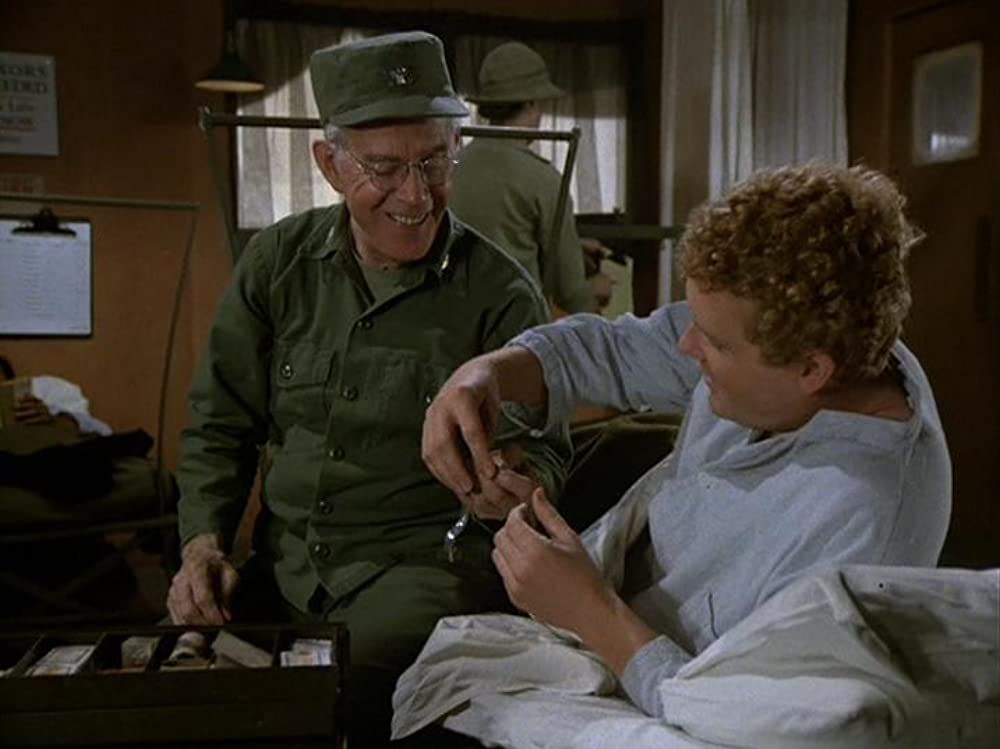 Promotion Commotion by Dennis Koenig first aired on 1 March, 1982. It’s just a fun goofy episode, though there’s a nice story that develops between Potter (Harry Morgan) and a wounded soldier, Danielson (Jim Boyce) who is catching flak from the rest of his unit because he wants to stay faithful to his girl at home instead of messing around with the women in Korea.