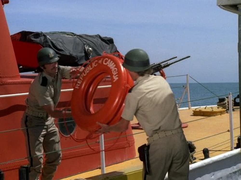 So while the IMF holds the mobster in prison (where Mimi is jailed with one of their molls), they go through their belongings hoping to find a key to a security deposit box, and become convinced it must be on their boat, a boat that Willy has just escaped from, injured, and washing ashore in Camagua.