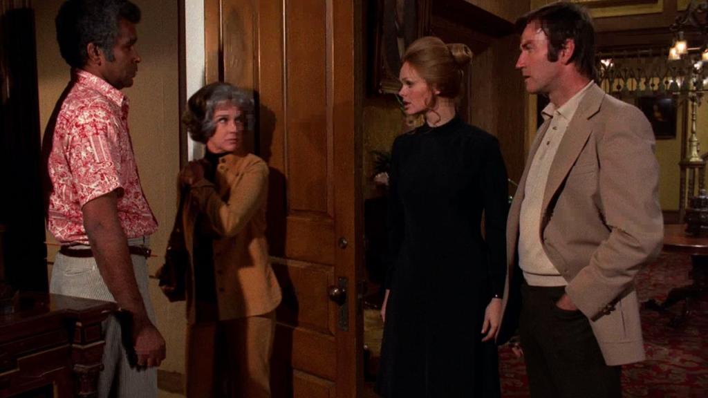 Hannah O’Connel (Kim Hunter) has escaped to a remote island after hiding a massive heist of stolen gold. She killed her son, Robert (Solomon Sturges) to keep it safe. This is the in that the team needs, and with O’Connel’s arrival on the remote island, she is put up in an ancestral home, overseen by Casey (Lynda Day George) who imparts the paranormal history of the house.
