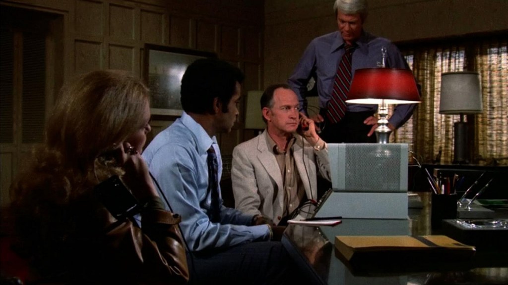 Once again, Phelps, Barney (Greg Morris), Willy (Peter Lupus) and Casey (Lynda Day George) put a fairly convoluted plan into action to bring the baddies down, but they all happily get a moment or two to shine.