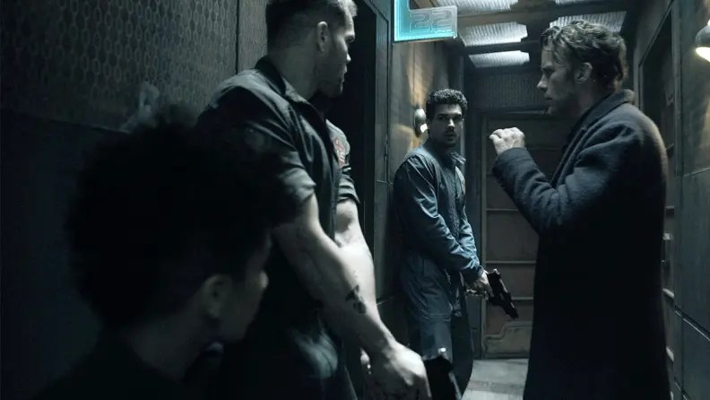 Aboard the Rocinante, Holden, Naomi (Dominique Tipper), Alex (Cas Anvar) and Amos (Wes Chatham) discover Chrisjen’s spy, Kenzo (Elias Toufexis) has snuck aboard, just as they are pinged by a Martian patrol.