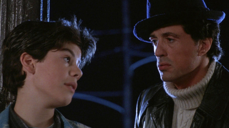 So the family loses everything, Rocky has retired, boxing has taken its toll on him, and they have to move back to the shadier part of town that they came from, with their teenage son, Rocky Jr. (Sage Stallone), in tow. Junior is book-smart and has some problems fitting in, but he’s unable to turn to his father, because Rocky has taken over Mickey’s (Burgess Meredith) old gym, and has found an up-and-comer that may be as good as he was, Tommy Gunn (Tommy Morrison).