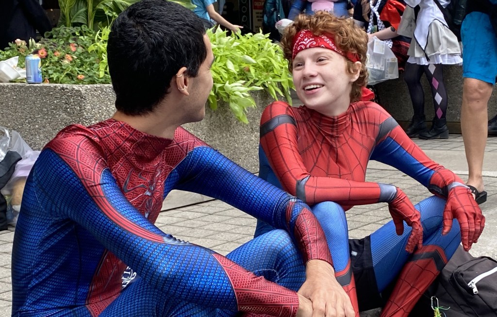 From there, a group of us went our separate ways to get some lunch while we waited for Michelle Hurd to show up – she was doing her part on the picket line here in TO for the SAG-AFTRA strike. There were fans everywhere sharing the same thought – gotta feed the machine – and I was delighted at how many Spider-mans (mens?/people?) I saw. Usually, it’s Deadpools everywhere, but this year your friendly neighbourhood webhead is showing up all over.