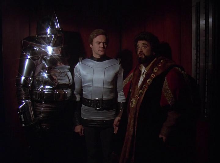 Andromus and the Cylon head to the party, where some wackiness ensues, but their real intention is to reach the radio station run by Daniels’ character, Norman Blore, and signal the Cylon fleet about Earth’s location, and that it will fall to their conquest.