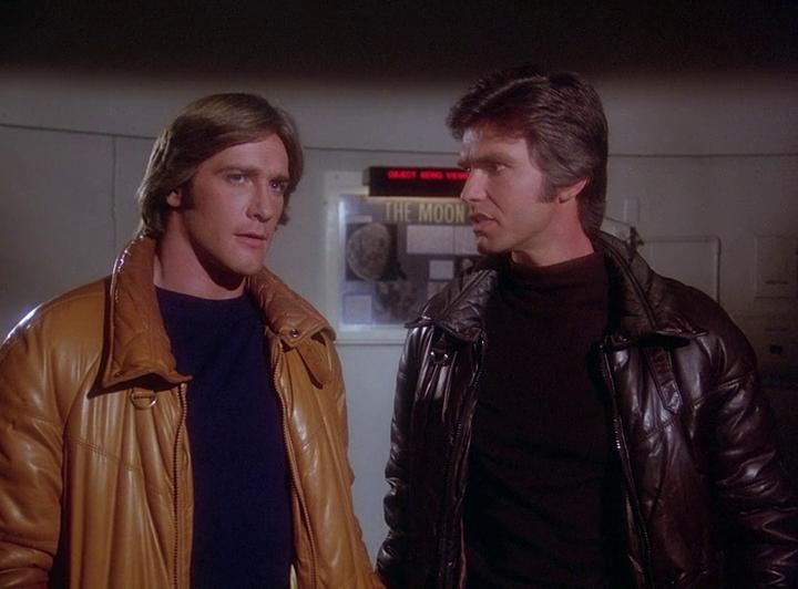 Troy (Kent McCord) and Dillon (Barry Van Dyke) pawn off the spacekids on Jamie (Robyn Douglass) when a new cylon fighter gets drawn into Earth orbit and is going to come down near New York, just in time for Halloween.