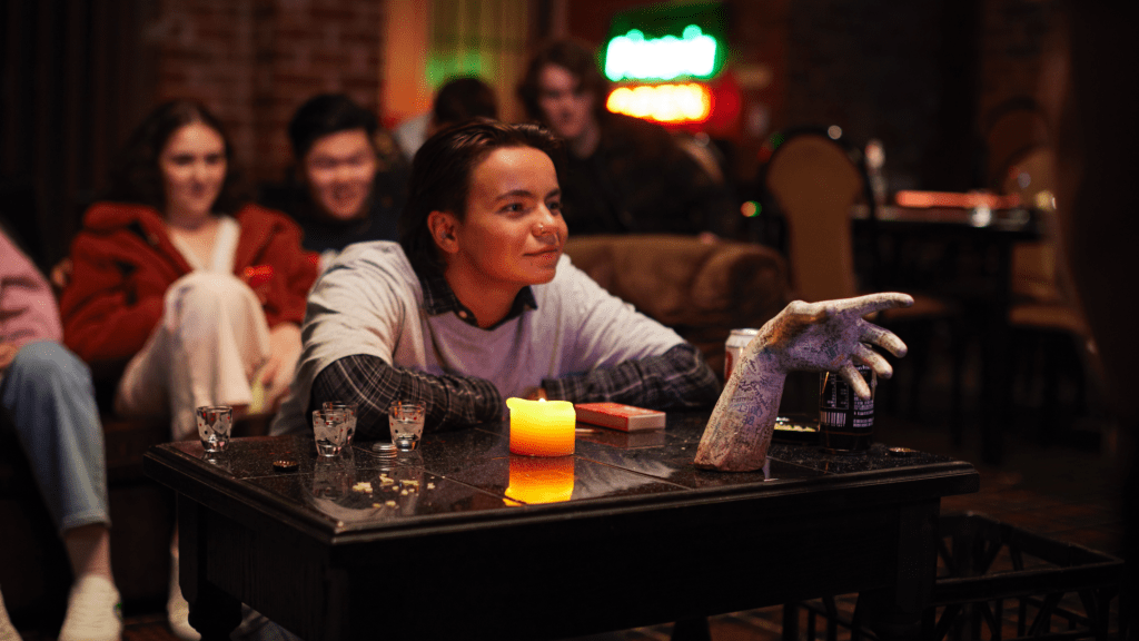 Because of her personal grief, she’s been branded a bit of a weirdo by the rest of her social group, but sees a chance to win some of her peers back when she agrees to take part in the strange game they’re all playing. They grasp the embalmed hand, say ‘Talk to me,’ this allows them a glimpse of spirits on the other side of the mortal veil, and they can invite them in, but anything longer then ninety seconds is dangerous, and they have to light a candle to summon them, and blow the candle out to dismiss them.