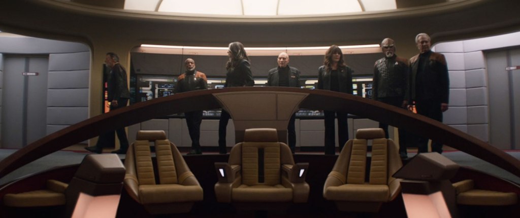 Geordi (LeVar Burton) has a plan, they need an analog ship, and a seed that was planted earlier in the season about bay 12 pays off when Picard and company escape to the Fleet Museum and board the restored Enterprise D.