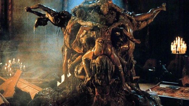 It’s still a gorefest, and the story isn’t super involved. We see a mass murder by the church of possibly demonically marked people at the beginning of the film, and a church is built on the grounds of the subsequent mass grave. Flash forward to the 80s, and a group of people find themselves trapped in the same church with the ghosts of the slaughtered people who are attempting to resurrect a demon!