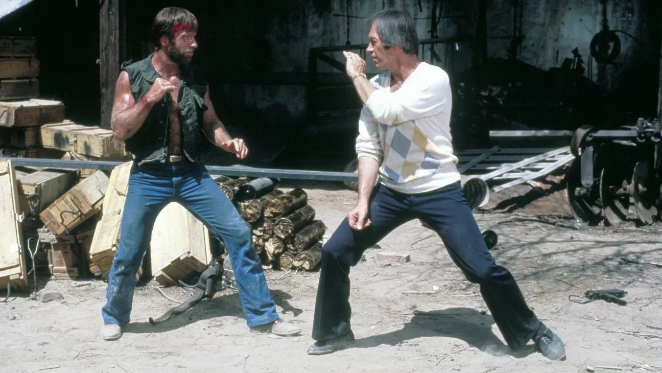 Norris plays the titular McQuade, a lone Texas Ranger, who finds himself squaring off against a drug and arms dealer, Rawley Wilkes (David Carradine).