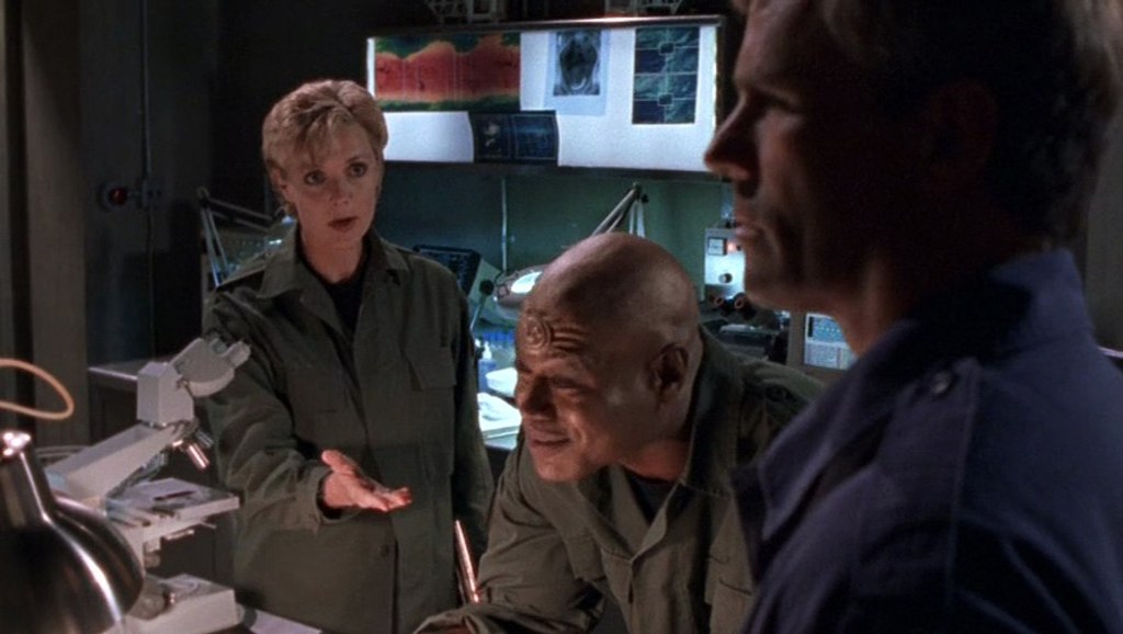 But when Teal’c (Christopher Judge) and O’Neill (Richard Dean Anderson) also swap with one another, it lets Anderson and Judge shine as they play one another’s characters.