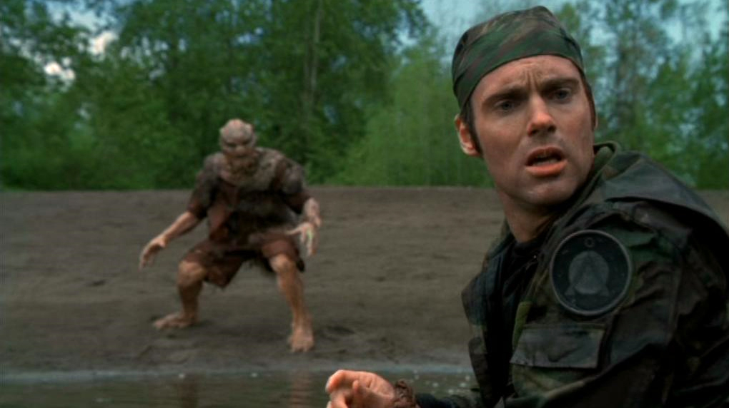 Daniel has joined Rothman (Jason Schombing) and SG-11 on a planet that may have been the original homeworld for the Goa’uld. During the course of their excavation, Daniel is grabbed by an Unas, Chaka (Dion Johnstone) and dragged away.
