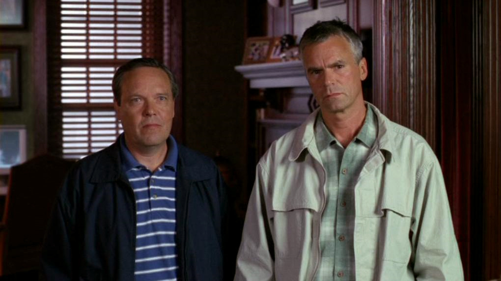O’Neill recruits some aid to help him get Hammond back, and the SGC back to norm… he gets Maybourne (Tom McBeath) released. The pair of them follow the digital trail and discover that Senator Kinsey (Ronny Cox) is behind a large part of it, his election fund has seen some large donations from the NID.