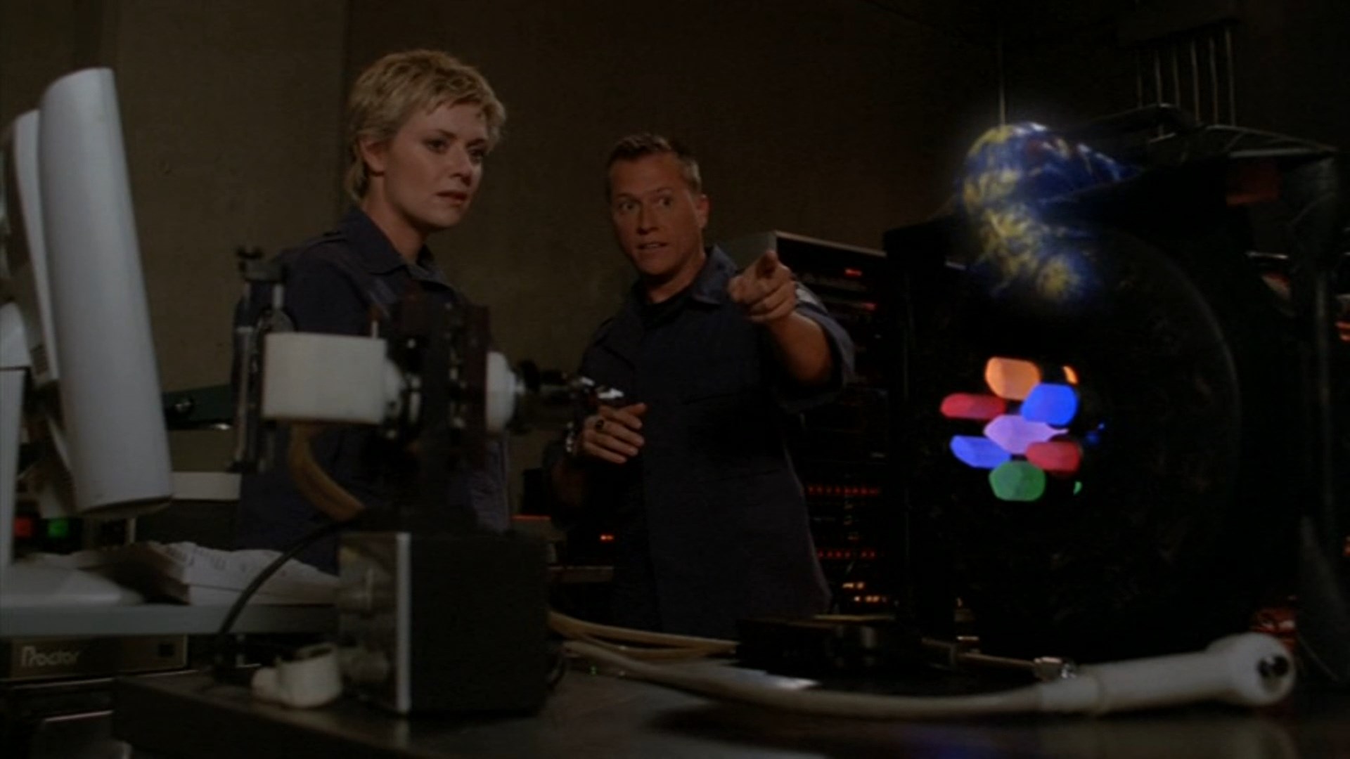 Carter (Amanda Tapping) and Jonas Quinn go to work on the device, though even he begins to think there is something wrong with him if he’s the only one seeing anything. He still thinks the device is the cause but won’t be able to study it further because Hammond (Don S. Davis) is having is sent to Area 51.