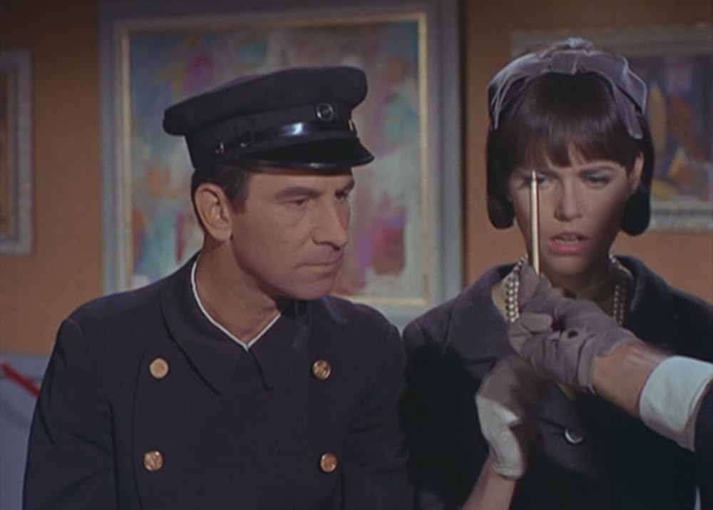 The Chief (Edward Platt) is the only one who knows, besides Max, that he’s on a mission, and hasn’t actually switched sides. Max has to drink, gamble and make it appealing for KAOS to approach and recruit him. He gives Agent 99 (Barbara Feldon) the brush off, unable to tell her the truth. Or poor Fang.