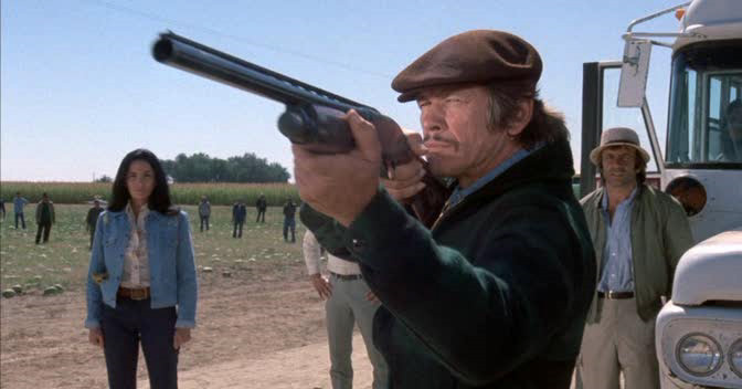 Bronson is the titular Mr. Majesytk. He’s got himself a melon farm, and is looking to recruit some migrant workers to help him bring in his harvest. When he runs afoul of a local thug trying to cut in on his harvest, he gets arrested.
