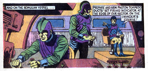 Meanwhile, the Enterprise is fast approaching Romulan space, and a ship (and crew that don’t look like any Romulans we’ve ever seen) is moving to intercept. They plan to blow the Enterprise up as soon as it crosses into their space.