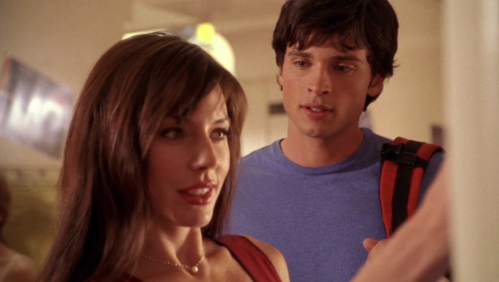 Clark (Tom Welling) discovers his heat vision, which gets out of control pretty quickly, and hurts Lana (Kristin Kreuk). And at school, there’s a new very sexy teacher, Ms.Desiree Atkins (Krista Allen) who is using kryptonite-enhanced pheromones to beguile, and is proving very tempting to everyone, and she seems to have her eyes set on Lex (Michael Rosenbaum).