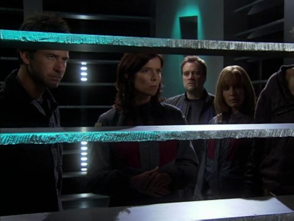 Written by Joseph Mallozzi and Paul Mullie from a story they developed alongside Brad Wright, this episode was first broadcast on 7 December, 2007. This is the mid-season mark, but there’s no big break between this and the next episode.