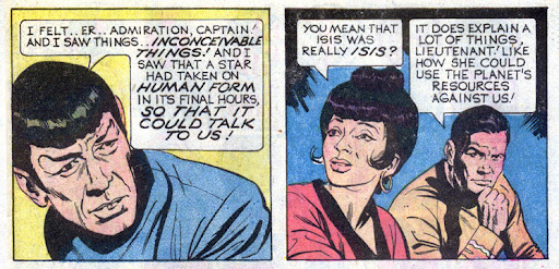 The legends and history of the people are related to the two officers, allowing them to fully understand what happened and what is actually going on. Returning to the surface, they find that Uhura and Chapel both agree to Isis’ right to die. And she shares her true nature with Spock as she calls out her farewells.