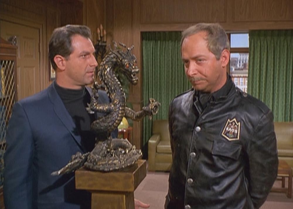 The episode also introduces Siegfried’s KAOS sidekick, Shtarker (King Moody). And that makes for a lot of fun, because it lets Kopell shine. And there’s a fun interplay between the two, including a fun sequence when they falsify a tape recording in Smart’s apartment.