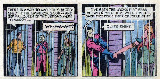 While the Emperor is set in his ways, Jivi recognizes Germal as the Yerba who saved him when he was young. Kirk also clues into the fact that Jivi and Germal may be falling in love with one another. The Emperor wants her locked away to keep her and her people in check, after she refuses to order their surrender.