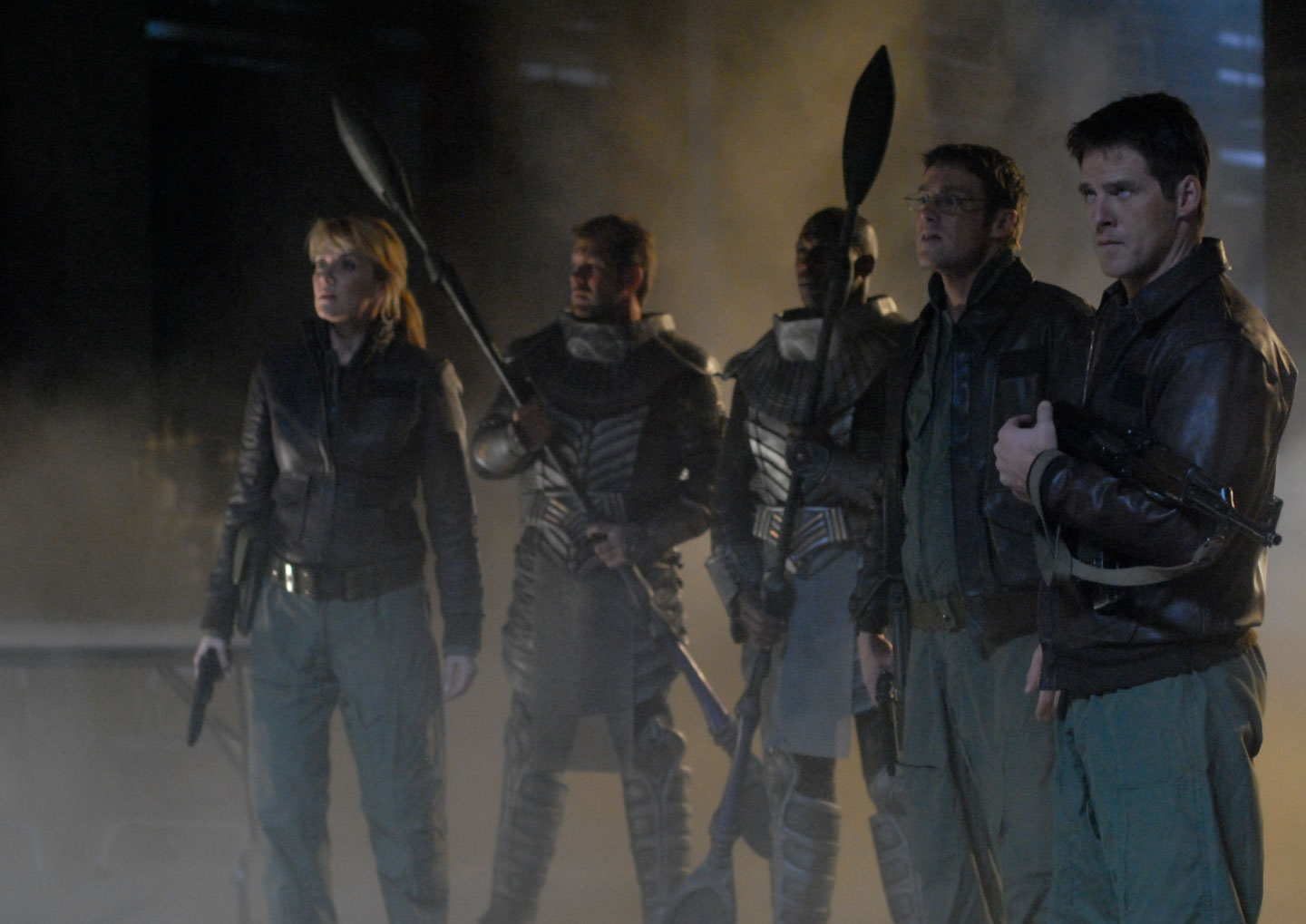 I do love checking in with SG-1. On the timeline of shows this comes in right after the season five opener of Atlantis, which I watch next week. It also raises some interesting character stuff, because as good as she is, Carter (Amanda Tapping) isn’t as strong a presence and leader in this as she is in Atlantis. And despite seeing Teal’c (Christopher Judge) a few episodes back with long hair, it’s gone now.