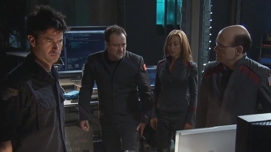 We get a flashback to how things happen, and see something we’ve never seen before, Sheppard and his team, atop a stargate, because the land has been flooded by a glacial dam breaking. And whatever was in it has had an effect on McKay.
