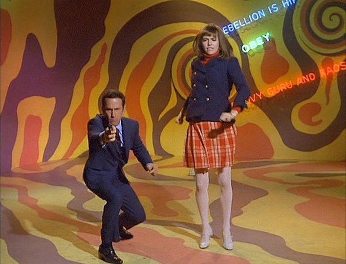 Things get underway with an attempted bombing of CONTROL, so the Chief (Edward Platt) sends the pair after the Guru and his hippies.