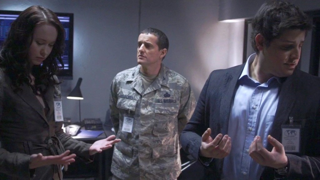 But is this the right timeline? Will they be able to get through this convoluted take and survive? It ends with Scott (Brian J. Smith) throwing a Kino through the gate, with warnings, information, and instructions on what to do.