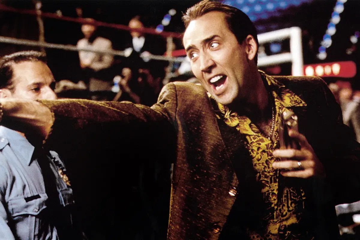 Nicholas Cage goes full Cage and turns it up to 11 for every scene in Brian De Palma’s conspiracy thriller, Snake Eyes.