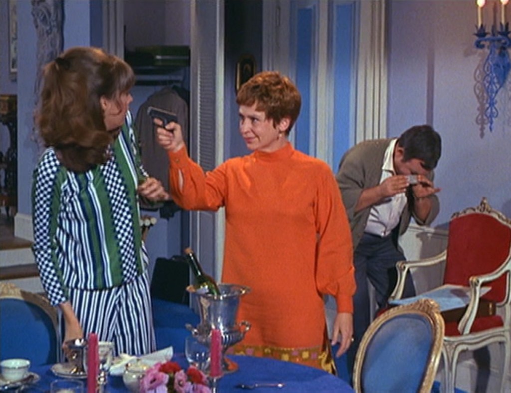 The neighbors, the Farkas, are played by Tom Bosley and Alice Ghostley. And their plan, after the poison takes effect is to steal Chief’s briefcase. It has a list of agents in it. Bosley and Ghostley aree hilarious together, and while Smart and the Chief struggle with their illness, the KAOS agents are copying the files.
