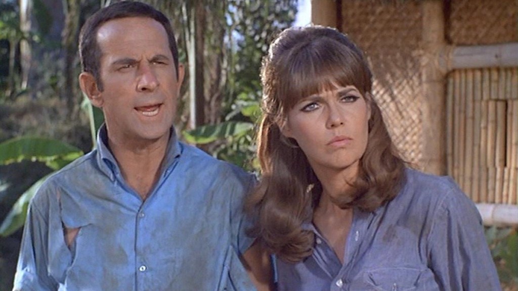 99 and Max are on their honeymoon!But they end up marooned on a deserted island, after their sailboat explodes. Well, it’s not completely deserted. Siegfried (Bernie Kopell) and Starker (King Moody) are there as well. And it’s not a real island, it’s a manufactured KAOS island (actually the Gilligan’s Island sets).