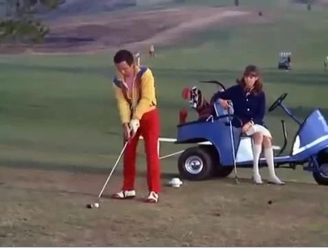 There are dangerous golf balls out there, and people are being hurt. All this means that KAOS must be up to something. There is a planned missile launch this afternoon, there’s a space center next to a golf course. So, Max and 99 pair up with a golf pro, Upjohn (Irwin Charone).